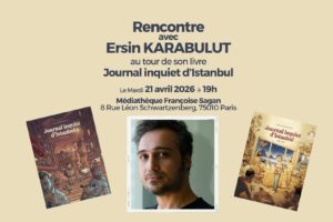 Nous avons le plaisir de vous convier à une rencontre avec Ersin Karabulut autour de son livreJournal inquiet d’Istanbul Le mardi 21 avril à 19hA la Médiathèque Françoise