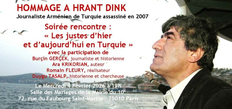 A nouveau réunis comme nous le sommes depuis plus d’une dizaine d’années, nous appelons à participer à une soirée en mémoire de Hrant Dink.